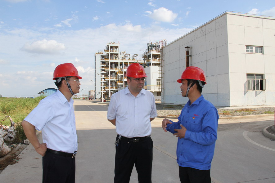 楊龍一行先后查看了生產(chǎn)廠區(qū)各裝置運行情況、固廢庫暫存區(qū)、固廢暫存庫建設(shè)現(xiàn)場、廠內(nèi)堿渣和鈦渣拋填試驗場地,了解氯化芐二期試生產(chǎn)、上下游廠家、外商貿(mào)易等情況。楊龍強調(diào),要提高綠色發(fā)展意識,壓實各級責任,做好安全環(huán)保工作,并要以產(chǎn)品銷售、新項目開發(fā)、固廢綜合利用為抓手,全方位、多渠道拓展市場,為工投鹽化工產(chǎn)業(yè)發(fā)展夯實基礎(chǔ)。