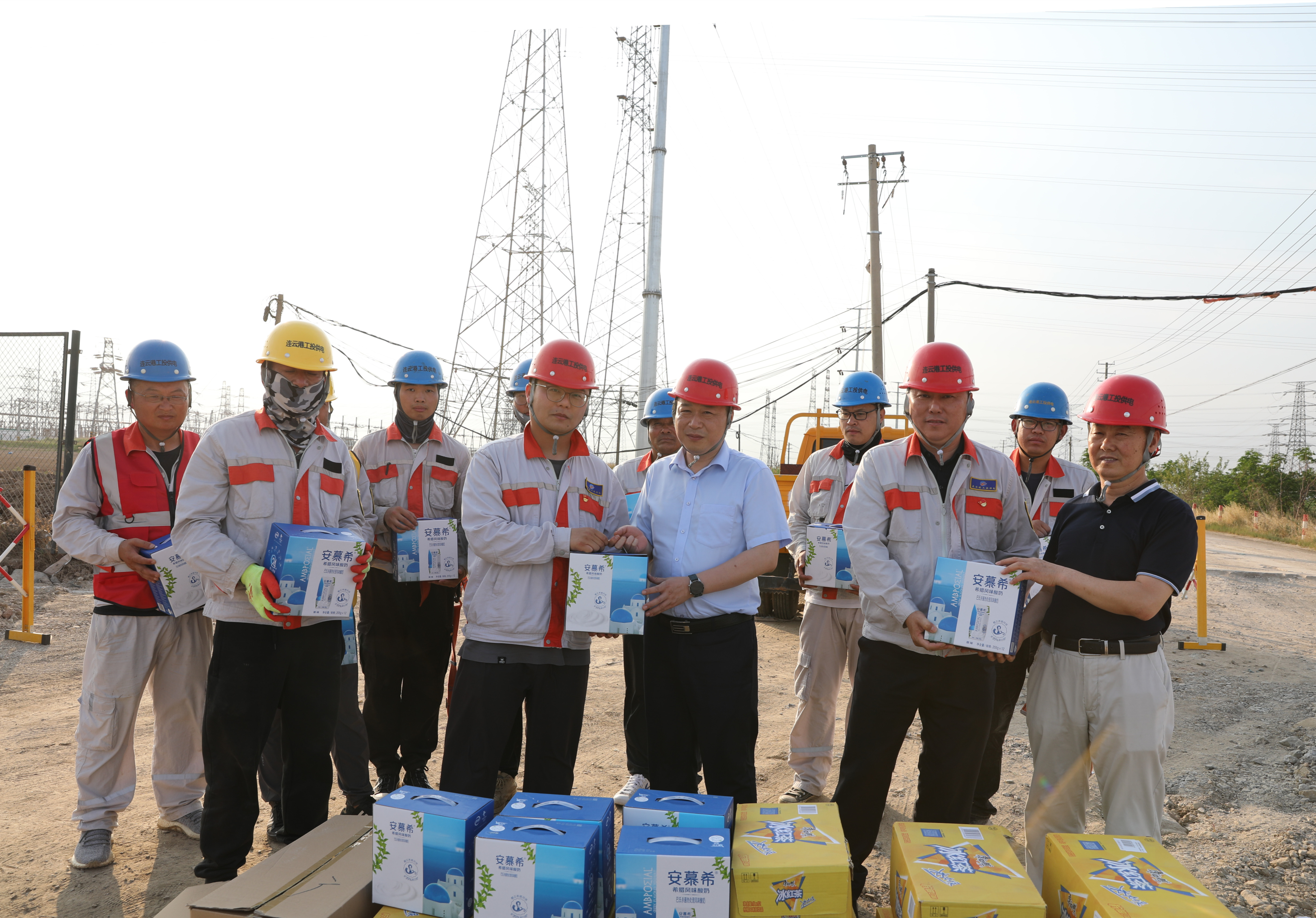 連續(xù)幾天,連云港市進(jìn)入高溫天氣??崾町?dāng)頭,德邦廠(chǎng)區(qū)段電力桿線(xiàn)遷改工程施工人員卻堅(jiān)守在施工一線(xiàn),冒著三十幾度高溫,奮戰(zhàn)在施工現(xiàn)場(chǎng),加班加點(diǎn)保障著工程建設(shè)的進(jìn)度。為切實(shí)做好一線(xiàn)施工人員防暑降溫工作,6月21日下午,公司黨委書(shū)記、總經(jīng)理宋晟曄、黨委副書(shū)記、工會(huì)主席王志軍一行人來(lái)到德邦電力桿線(xiàn)遷改工程的施工現(xiàn)場(chǎng),把冰紅茶、西瓜等防暑降溫物品送到施工人員手中,給堅(jiān)持奮戰(zhàn)在高溫一線(xiàn)的職工送去了公司滿(mǎn)滿(mǎn)的關(guān)懷和夏日里的一份清涼。(邱利益)