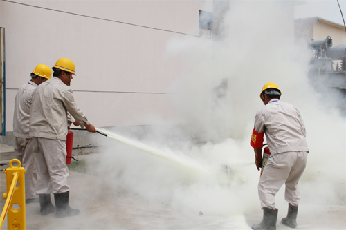 演練假設(shè)灌西變電所35千伏在用1號主變在運行過程中突然起火,火勢危及變電所的安全運行,情況十分危急?;馂?zāi)發(fā)生后,變電所值班人員立即向所領(lǐng)導(dǎo)報告,按指示啟動滅火應(yīng)急預(yù)案。滅火過程中,共動用4支滅火器從不同角度對火勢進行壓制。經(jīng)過半個小時的協(xié)同作戰(zhàn),值班人員準確、快捷、安全地完成了滅火演習(xí)過程,演練取得圓滿成功。