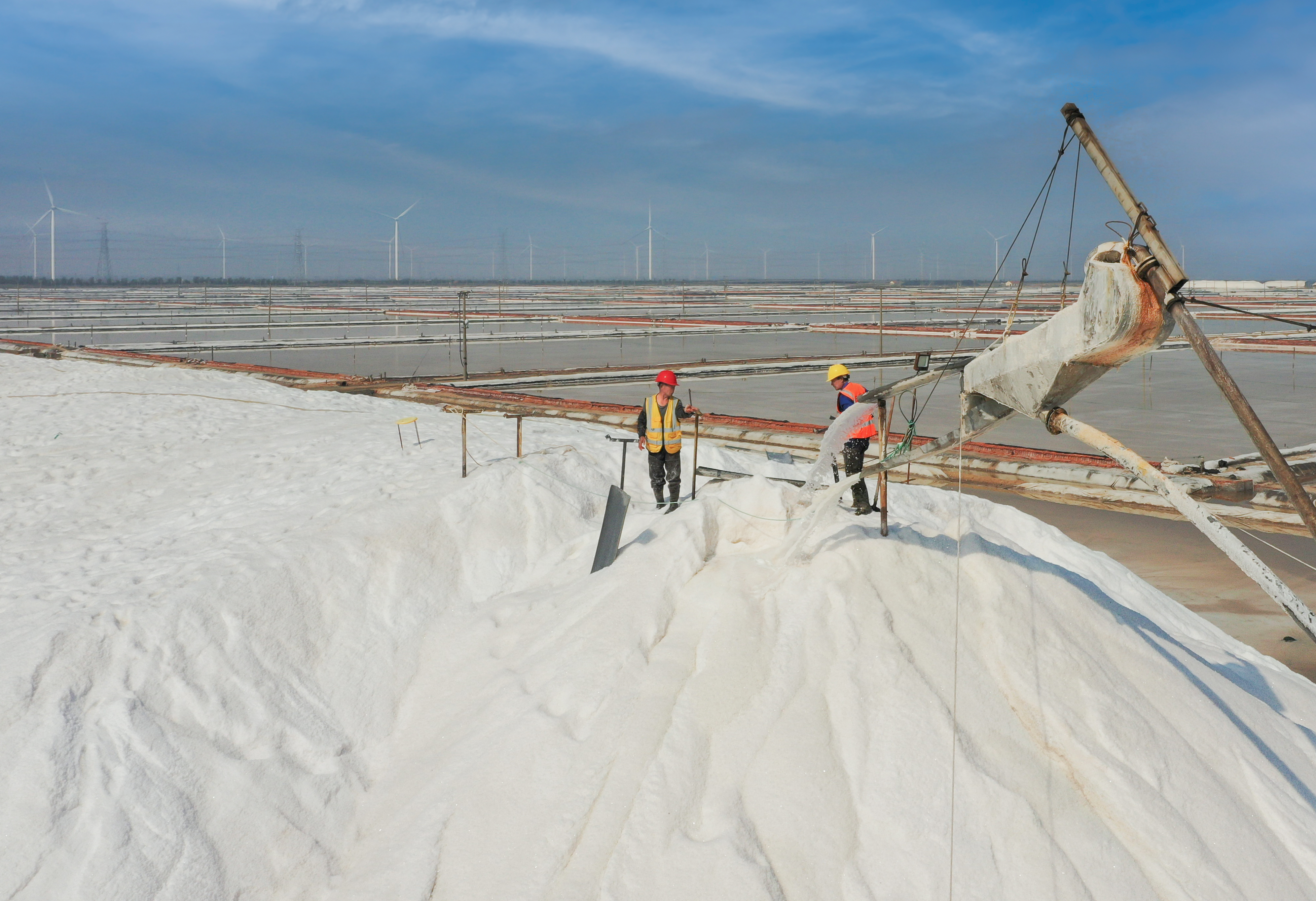 6月10日,伴隨著一臺(tái)臺(tái)轟鳴的機(jī)器聲落下帷幕,日曬制鹽公司春季扒鹽40萬(wàn)噸工作圓滿結(jié)束,在廣袤的鹽田里遠(yuǎn)遠(yuǎn)望去,只見(jiàn)一排排鹽廩在陽(yáng)光的普照下,發(fā)出了耀眼的光茫。