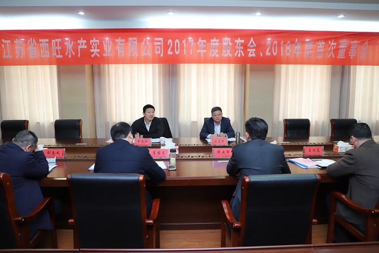 3月22日,江蘇省西旺水產(chǎn)實(shí)業(yè)公司2017年股東會、2018年第一次董事會在投資公司三樓會議室召開,省沿海開發(fā)集團(tuán)黨委委員、副總經(jīng)理周金陽,連云港市工業(yè)投資集團(tuán)黨委委員、總會計(jì)師匡友本等股東代表、董事代表出席了會議。