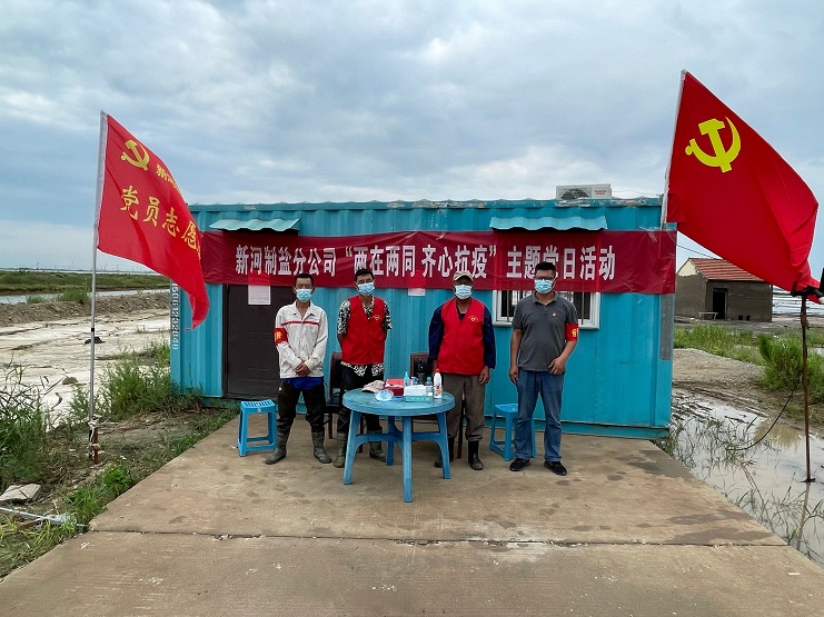 新河制鹽分公司根據投資公司黨委安排,在零班二期設立卡點,嚴格落實領導干部24小時帶班、值班和疫情突發(fā)狀況報告等制度,支部亮旗、黨員亮徽、職工亮力,共同織就公司疫情防控網。一個支部就是一座堡壘,一名黨員就是一面旗幟,全公司黨員紛紛亮出身份,主動請纓,沖鋒在前,放棄假期積極投身最需要的地方,用行動踐行初心使命,全力打好這場疫情防控阻擊戰(zhàn)!(新河黨支部)