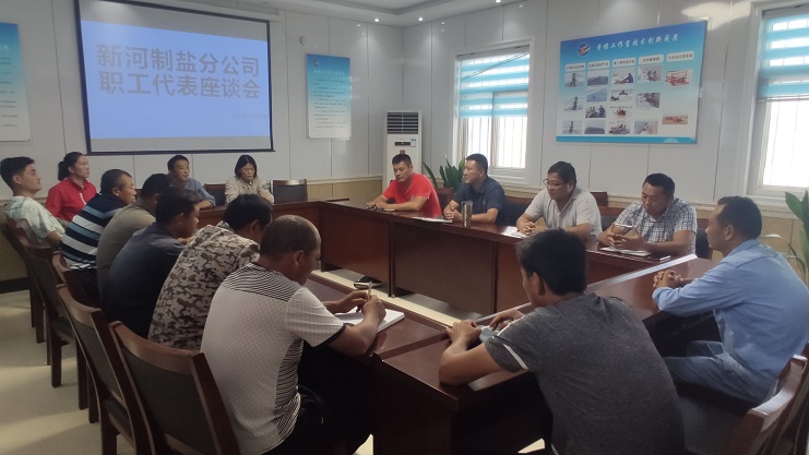 根據投資公司工會要求,8月30日下午,新河制鹽分公司工會在支部活動室召開職工代表座談會,參加座談會的人員有公司管理人員代表、班長代表、黨員代表、女工代表、普通職工代表。