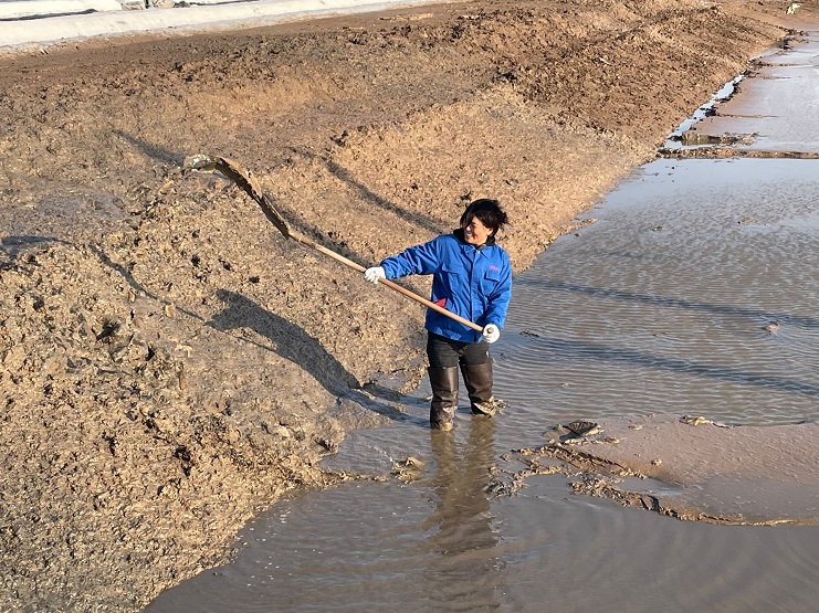 在制鹽生產(chǎn)一線,印象中是男人的戰(zhàn)場,那么和他們并肩在戰(zhàn)場上的女職工一定是女中豪杰。新河制鹽分公司十五班員工楊中華自2011年成為日曬制鹽員工以來,一直堅守在生產(chǎn)制鹽一線,憑借過硬的基本功,成為公司首位星級員工,她經(jīng)常鞭策自己要堅持不懈地奮斗,活碴、扒鹽、補塑料,女人能做的她能做,撈溝、做埝、清土塘,男人能干的他也能干,是名副其實的“全面手”。一年四季,她從未穿過漂亮的裙子,工作服、安全帽、勞保鞋就是她的標配,烈日驕陽下,風雨瓢潑中哪里都有她的身影,作為女性有時確有諸多不便,但是她從沒把自己當女人看,該干的工作照干,該往前沖的她決不后退,工作早已成為了她的樂趣,看似“自討苦吃”的努力,卻讓她百煉成鋼,為了扒鹽,她連續(xù)放棄二個月陪同兒子的美好時光,全力以赴做好扒鹽工作,在班長生病住院期間,她挺身而出主動挑起班里各項事務(wù),為班組的生產(chǎn)業(yè)績提供有力支撐。
