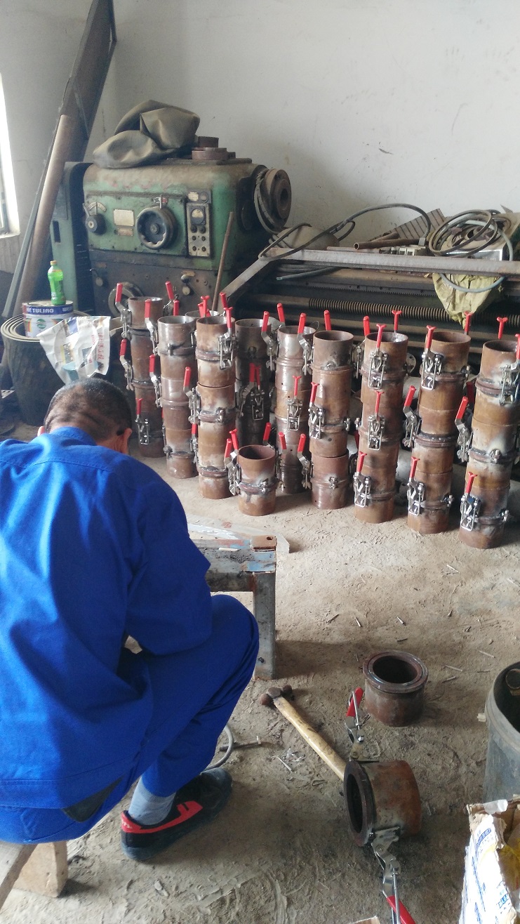 為提高扒鹽管道安裝速度,減輕鹽業(yè)工人勞動負(fù)荷,連日來,機(jī)電服務(wù)公司制作人員認(rèn)真進(jìn)行管道快接頭制作,他們分工負(fù)責(zé),2人專門焊接,4人進(jìn)行管道接頭安裝,預(yù)計(jì)本周五一臺機(jī)組63節(jié)管道,4個(gè)彎頭制作完成,下周進(jìn)行實(shí)際試用。(機(jī)電服務(wù)公司)