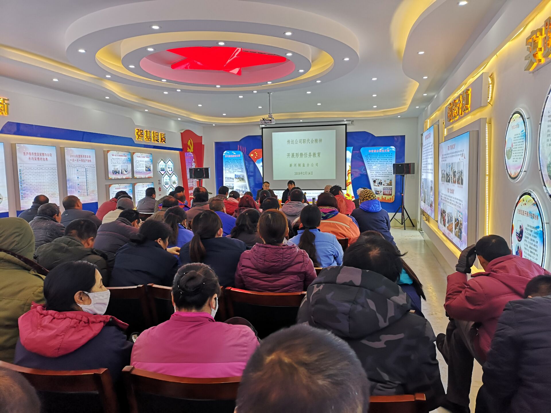 2月14日,在新河制鹽黨員活動室召開全體員工大會。共170余人參加會議,宣傳學(xué)習(xí)貫徹兩級職代會精神,讓職代會精神深入人心,會上還就班組團結(jié)、穩(wěn)定等方面從不同角度作具體分析要求。對2019年安全生產(chǎn)工作作重點規(guī)劃安排。目標(biāo)已規(guī)劃,任務(wù)已明確,分解到班組,一年之計在于春,抓緊抓早抓實,保持昂揚斗志,迎難而上,大干當(dāng)前,為完成全年30萬噸目標(biāo),打下堅定的基礎(chǔ)。(江德前)