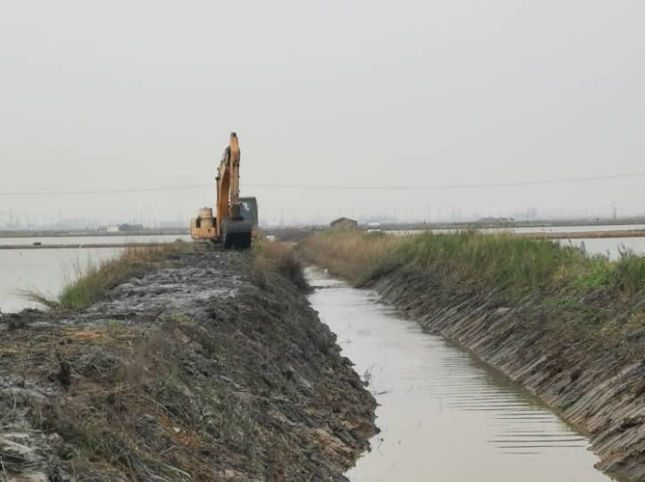 為了保障養(yǎng)殖正常生產,營造良好的投資環(huán)境。近期,養(yǎng)殖服務公司配合投資發(fā)展部對部分淤塞嚴重,長滿雜草的海水養(yǎng)殖池塘進、排水渠道進行疏通。圖為南翼綠化工程公司正在用挖掘機械理順進、排水渠道。(養(yǎng)殖服務)