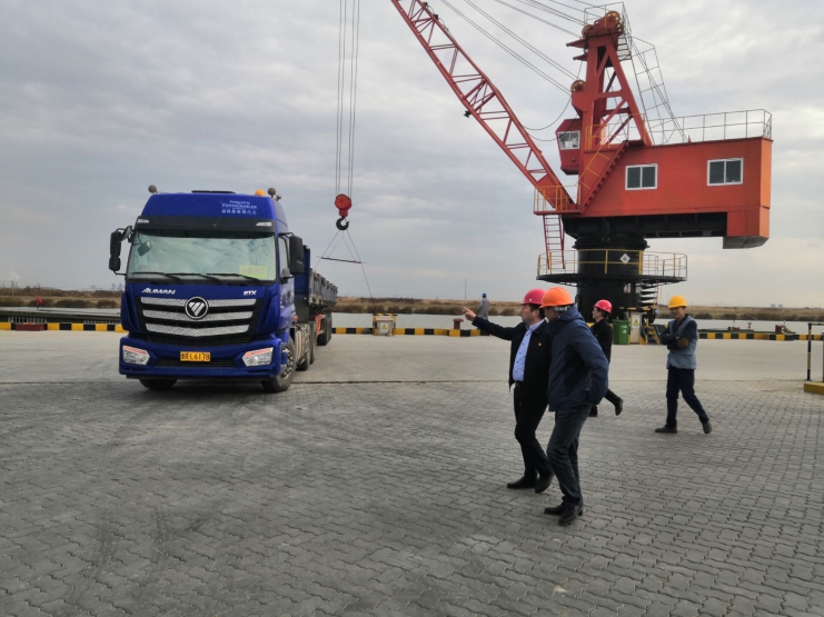 11月21日下午,投資公司董事長、總經(jīng)理李國文,總經(jīng)理助理潘艾衛(wèi)來到宵洋物流碼頭指導(dǎo)工作。宵洋物流負(fù)責(zé)人沈志兵、書記季汝磊在碼頭場地分別對(duì)碼頭經(jīng)營情況和后勤保障工作進(jìn)行了匯報(bào)總結(jié)。