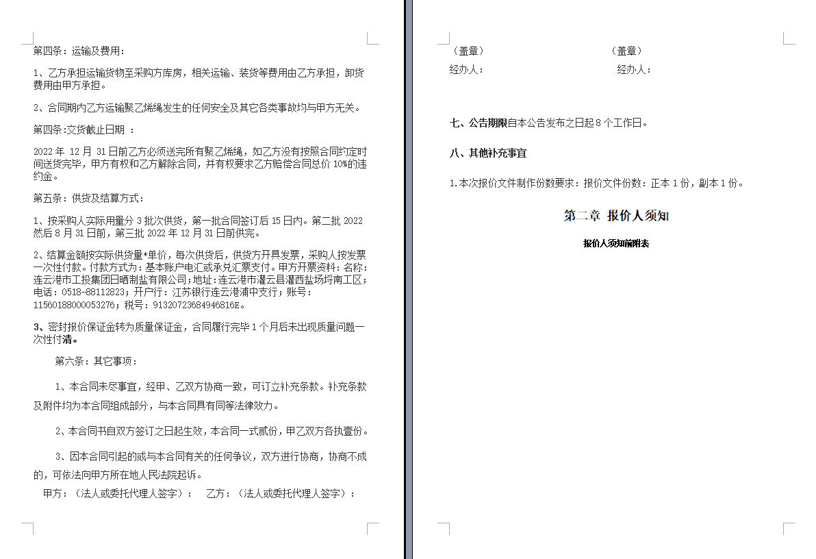 連云港市工投集團日曬制鹽有限公司聚乙烯繩采購項目