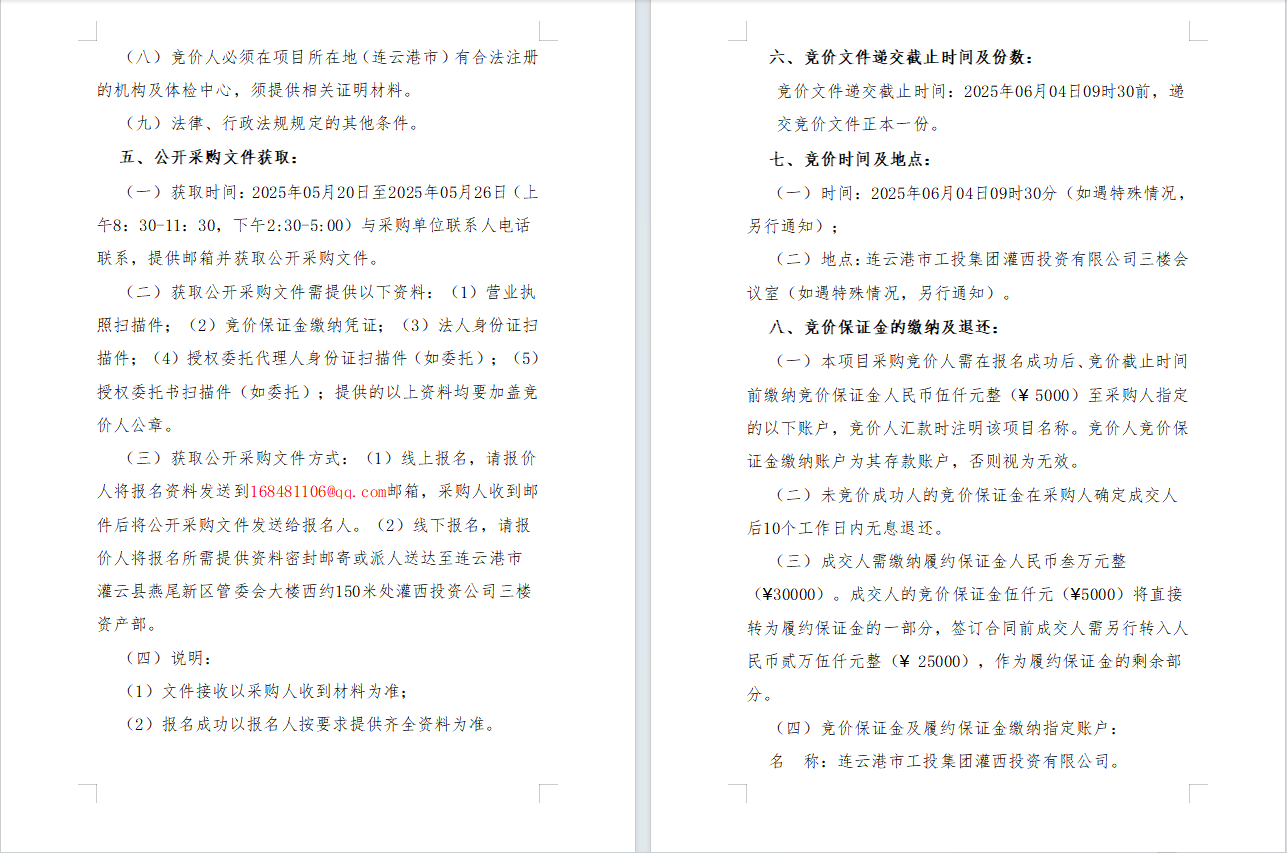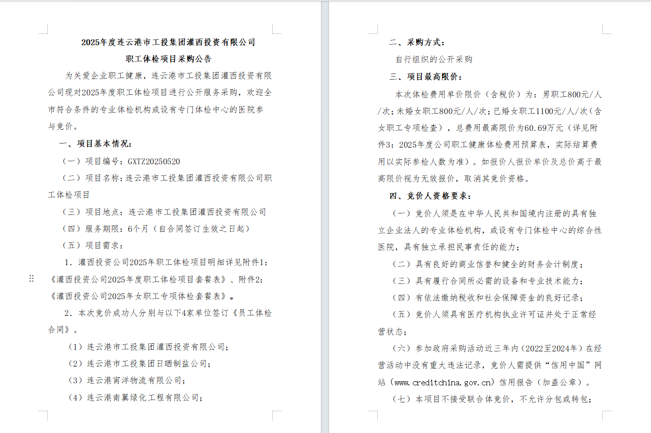 2025年度連云港市工投集團(tuán)灌西投資有限公司職工體檢項目采購公告