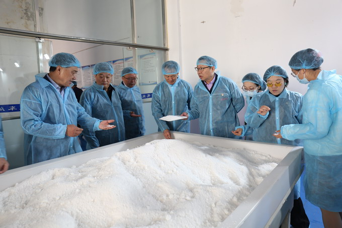 10月13日上午,蘇鹽協(xié)會副理事長伏運景帶領省戰(zhàn)略與發(fā)展研究中心及省經(jīng)濟和信息化研究院相關研究人員一行,到我公司開展編撰省鹽行業(yè)年度發(fā)展報告相關企業(yè)調(diào)研。集團公司黨委委員、總會計師匡友本,我公司主要領導陪同調(diào)研。伏運景一行參觀了公司雪花鹽車間、包裝鹽車間,聽取公司基本情況和發(fā)展情況介紹。伏運景對我公司充分重視本次調(diào)研工作表示感謝,肯定了鹽改以來我公司先導性發(fā)展經(jīng)驗和成就。(金宣)