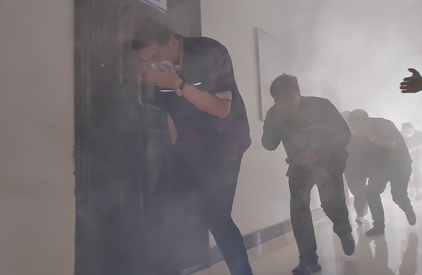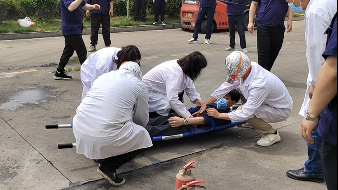演練分為火災(zāi)應(yīng)急疏散、火災(zāi)應(yīng)急救援、有限空間應(yīng)急救援三個部分展開。在火災(zāi)應(yīng)急疏散演練中,設(shè)定三樓會議室為模擬火災(zāi)現(xiàn)場,人員2分鐘內(nèi)從指定逃生路線規(guī)范、有序、迅速撤離到了安全地帶;火災(zāi)事故應(yīng)急救援和有限空間應(yīng)急救援分別模擬紙箱庫著火及地龍有害氣體窒息,分信息報告、啟動應(yīng)急響應(yīng)、現(xiàn)場警戒、醫(yī)療救護、事故搶險等各處置環(huán)節(jié),整個演練緊張有序,過程流暢,達到檢驗應(yīng)急預(yù)案的可行性和提高應(yīng)急救援人員的應(yīng)急處置能力的效果,為完善我公司應(yīng)急預(yù)案提供實踐依據(jù)。