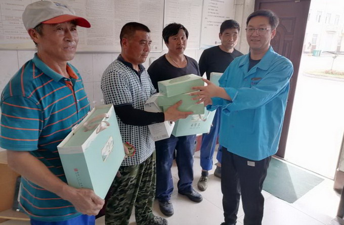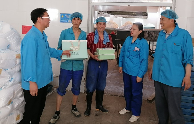 6月8日,我公司工會(huì)開(kāi)展夏季“送清涼”活動(dòng),黨委副書(shū)記、工會(huì)主席曹開(kāi)明一行,為高溫下的一線職工送去了茶葉、菊花茶等防暑降溫用品。