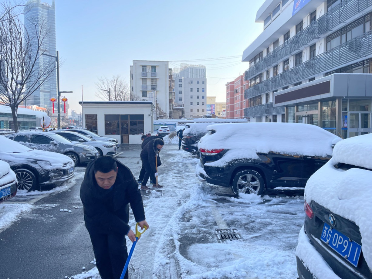 昨日,暴雪如期席卷我市,銀裝素裹間,積雪厚度也迅速增加。公司門前及院內(nèi)的厚重積雪,給日常辦公與員工的出行安全埋下了不小的隱患。面對這一情況,金融板塊的員工們迅速響應(yīng),以雪為令,迎寒而上,展開了一場掃雪除冰的集體行動。
