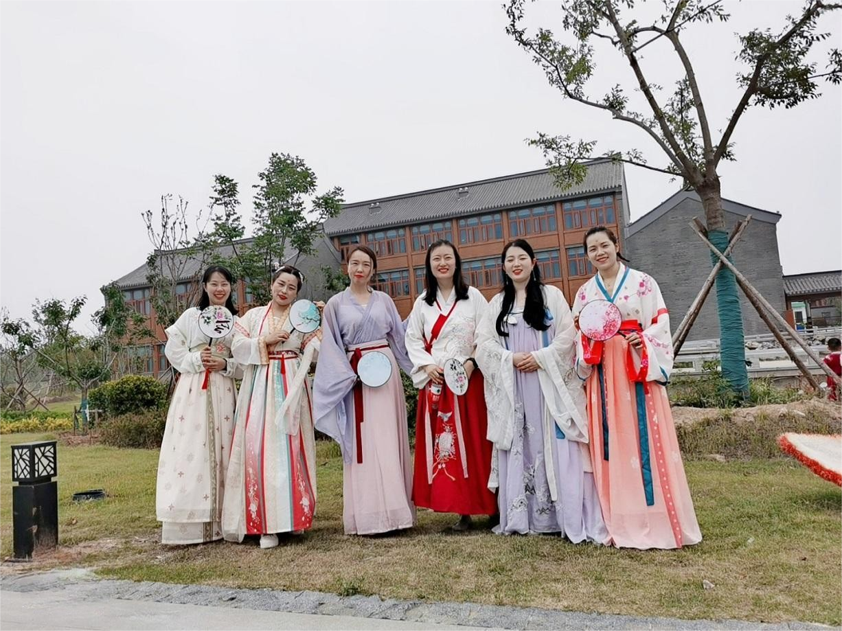 活動現(xiàn)場,來自金融板塊各部門的20余名員工,身著漢、唐、宋、明不同形制華美優(yōu)雅、端莊秀麗的漢服,攜手起舞,漫步在園博園的各個角落,為這個現(xiàn)代都市帶來了一抹醉人、古樸的文化氣息。著漢服的員工們重溫古代禮儀和儀式,感受中華文化的深厚底蘊。還開展了誦讀經(jīng)典、繡荷包、刺五毒、趣味吃粽子、“粽”橫四海等豐富多彩的端午主題文化活動,充分展現(xiàn)了員工生動的活力和熱情。在錦鯉游動、荷塘月色、彩蝶翩翩的園內(nèi),大家沉浸于濃濃的中華古風之中,用心感受著中華傳統(tǒng)文化的獨特魅力。此次活動展現(xiàn)了增強員工的凝聚力和歸屬感,為公司的發(fā)展注入了新的活力。