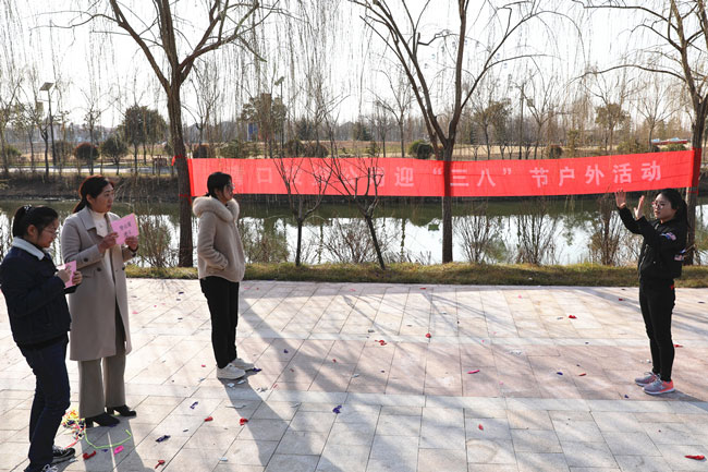 為使大家身心得到最大放松,投入戶外體驗清新大自然,在絲路小鎮(zhèn)公園進行了“三月女人天 別樣婦女節(jié)”主題戶外活動。游戲“你畫我猜”中,隊員們有的配合默契一猜既中,也有的用肢體艱難的比劃著,引的大家捧腹大笑?!安葰馇颉庇螒蚋亲尙F(xiàn)場氣氛達到沸點,每人都放開平日工作中的嚴謹,放松心情在場地上追逐奔跑。大家在游戲中收獲了歡聲笑語及片片感動,同時,通過游戲提高大家的合作意識和進取精神,營造濃郁節(jié)日氣氛。
