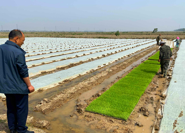 當(dāng)前水稻生產(chǎn)已全面進入揭膜管理期,大新農(nóng)場把保苗護苗作為促進穩(wěn)產(chǎn)增收的一件大事來抓,結(jié)合開展創(chuàng)先爭優(yōu)活動,管理人員進入生產(chǎn)一線,督促條田管理工提前做好秧苗管理工作,為下一步插秧序時推進打下堅實基礎(chǔ)。(王 璐)