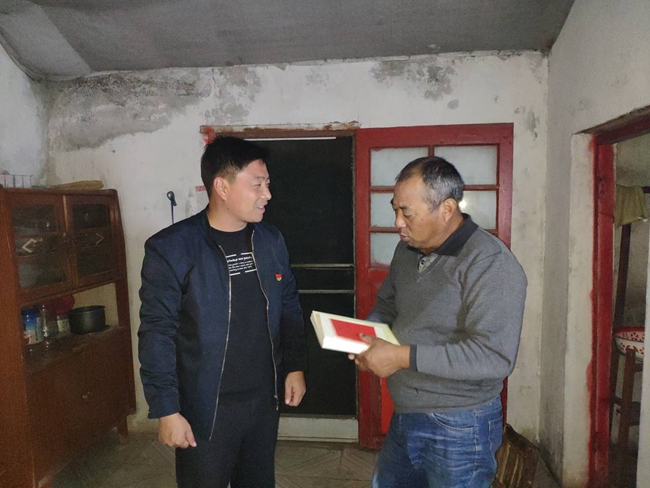 支部書記領(lǐng)學(xué)了優(yōu)秀共產(chǎn)黨員孔繁森、張富清先進(jìn)事跡。在學(xué)習(xí)黨的優(yōu)秀干部先進(jìn)事跡的同時(shí)引導(dǎo)黨員自覺對(duì)表對(duì)標(biāo),查找自身在黨員意識(shí)、擔(dān)當(dāng)作為、服務(wù)群眾、作用發(fā)揮等方面的差距和不足,進(jìn)一步自我進(jìn)化、自我完善,加強(qiáng)黨性修養(yǎng),以實(shí)際行動(dòng)踐行初心使命。為讓全體黨員都能參與到主題教育活動(dòng)中來,支部采取送學(xué)上門的方式,為退休黨員李加學(xué)送去黨章、《綱要》、《摘編》等書籍。