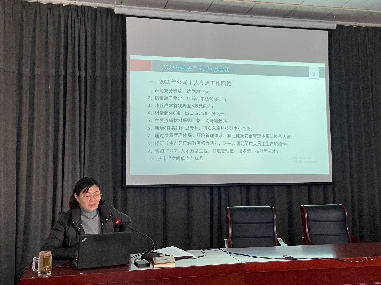 會上,公司副總經(jīng)理王爽芳總結(jié)了2020年公司十大亮點(diǎn)工作,部署2021年生產(chǎn)重點(diǎn)工作。公司總經(jīng)理助理李洋總結(jié)了2020年生產(chǎn)車間管理工作,提出車間2021年“5S”管理目標(biāo)。