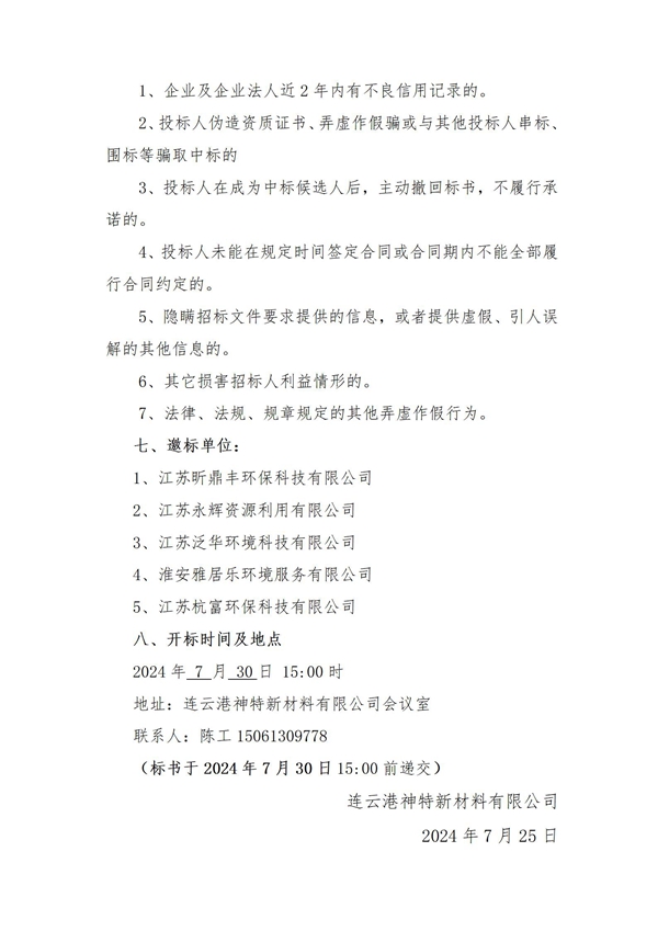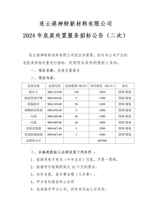 神特公司2024年危廢處置服務(wù)招標(biāo)公告(二次)