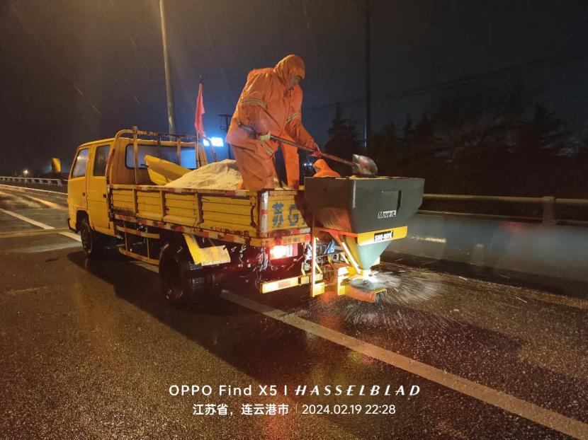 ? ? 2月20日晚,港城迎來又一輪降雪,低溫雨雪冰凍天氣對(duì)城市道路交通和市民出行產(chǎn)生較大影響。為確保雪天道路暢通及市民出行安全,綠化分公司聞雪而動(dòng),從2月19日晚開始,組織應(yīng)急隊(duì)伍連夜行動(dòng),在花果山大道、黃海大道等開發(fā)區(qū)主干道拋撒融雪劑,開展清雪除冰工作,掀起一場(chǎng)齊心協(xié)力、團(tuán)結(jié)互助的戰(zhàn)風(fēng)雪、保通暢行動(dòng)。