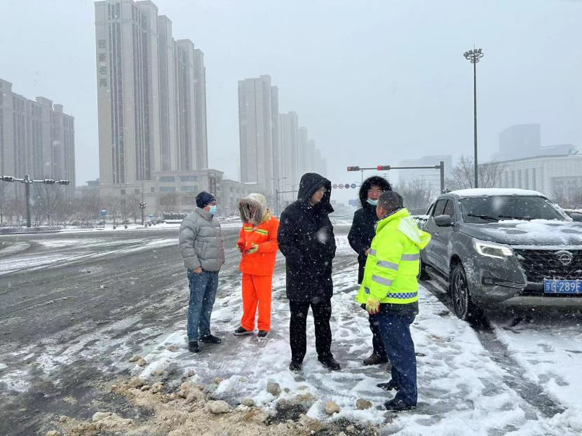 上午10時許,暴雪如約而至。裝有融雪劑的車輛全部整裝待發(fā),聞令而動,采取“人工+機械”不間斷作業(yè)模式,對轄區(qū)主次干道、橋涵、火車站東站、創(chuàng)智大廈等帶坡路段及時拋撒融雪劑,采取“滾刷+鏟車”組合方式,反復排掃路面積雪,確保主次干道、帶坡路段通暢無冰。