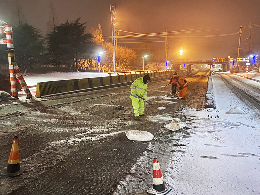 ? ? 受冷空氣影響,1月31日晚,港城突降瑞雪。公司第一時(shí)間啟動(dòng)掃雪除冰應(yīng)急預(yù)案,上下聯(lián)動(dòng),道路保潔、市政養(yǎng)護(hù)、后勤保障等戰(zhàn)線的干部職工全員出動(dòng),奮戰(zhàn)在掃雪除冰第一線,突出重點(diǎn)區(qū)域、重點(diǎn)路段、橋梁涵洞清掃積雪,保證人們出行方便安全,保障園區(qū)交通順暢。