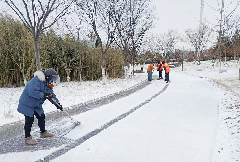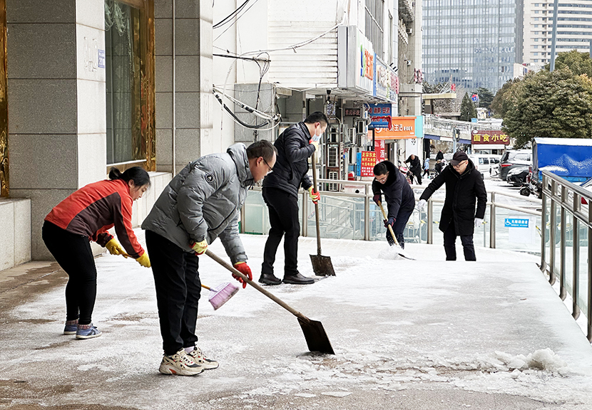 ? ? 機(jī)關(guān)管理人員全員出動(dòng),與東園社區(qū)聯(lián)動(dòng),掃除街邊、道路、小區(qū)、商鋪等門(mén)前積雪,確保周邊居民出行安全。