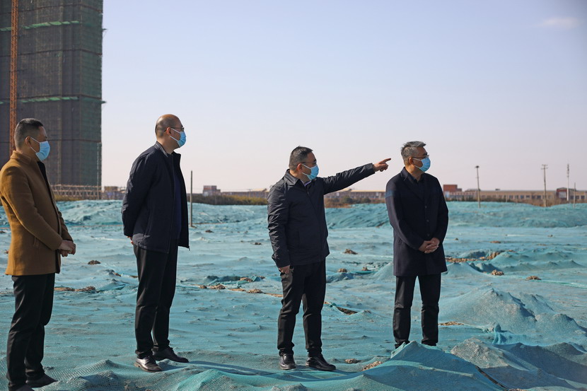 楊龍董事長一行首先檢查貨場道路和地面硬化情況,然后對未用地塊裸土苫蓋情況進行現(xiàn)場督察。