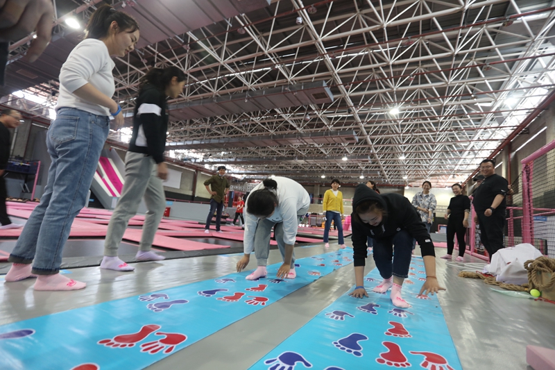 團建活動中,兩個隊伍的成員通過頭腦風(fēng)暴為自己的隊伍分別取名為“黛玉隊”和“寶釵隊”,分別由看起來比較柔軟實際也很柔軟的王茜和看起來很有力量,實際也很有力量的宋文靜帶領(lǐng)。大家喊出來鼓舞人心的口號,簡單的取名、口號環(huán)節(jié)起到了破冰的作用,瞬間拉近了隊員之間的距離。拓展訓(xùn)練中,青年們共同配合,迎難而上,大膽挑戰(zhàn)自我,“重走長征路”、“黨史60秒”、“四平八穩(wěn)”等緊張激烈的對決中,每個團隊齊心協(xié)力攻克了一個個最初認為不可能完成的項目,共同分享了成功的喜悅和挑戰(zhàn)的激情,充分地體會到了團隊信任、合作共贏、換位思考、永不言敗的重要意義,圓滿完成了拓展訓(xùn)練任務(wù)。