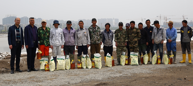 四月的風(fēng)吹來(lái)了奮斗的紅,在五一來(lái)臨之際,在公司熱火朝天大干二季度的春季生產(chǎn)中,4月28日,王德志、楊善革等投資公司領(lǐng)導(dǎo)分組慰問(wèn)了海州灣公司扒鹽現(xiàn)場(chǎng)的一線(xiàn)員工,并為他們帶去了米、油等慰問(wèn)品和一份特殊的“精神食量”——黨史學(xué)習(xí)教育書(shū)籍,為每一位員工提前送上了節(jié)日的祝福,感謝他們的辛勤付出。
