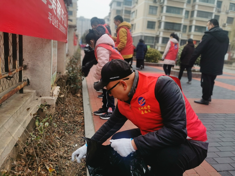 2月28日上午,陰天伴著小雨,卻無法澆滅投資公司志愿者火熱的心,一個個印著“工投集團”“臺北投資”字樣的“小馬甲”穿梭在平山花園社區(qū)廣場和小區(qū)內(nèi)。事跡宣講、普法宣傳、義務(wù)獻血、清潔衛(wèi)生···大家忙的熱火朝天,用實際行動來詮釋者新時代雷鋒精神。
