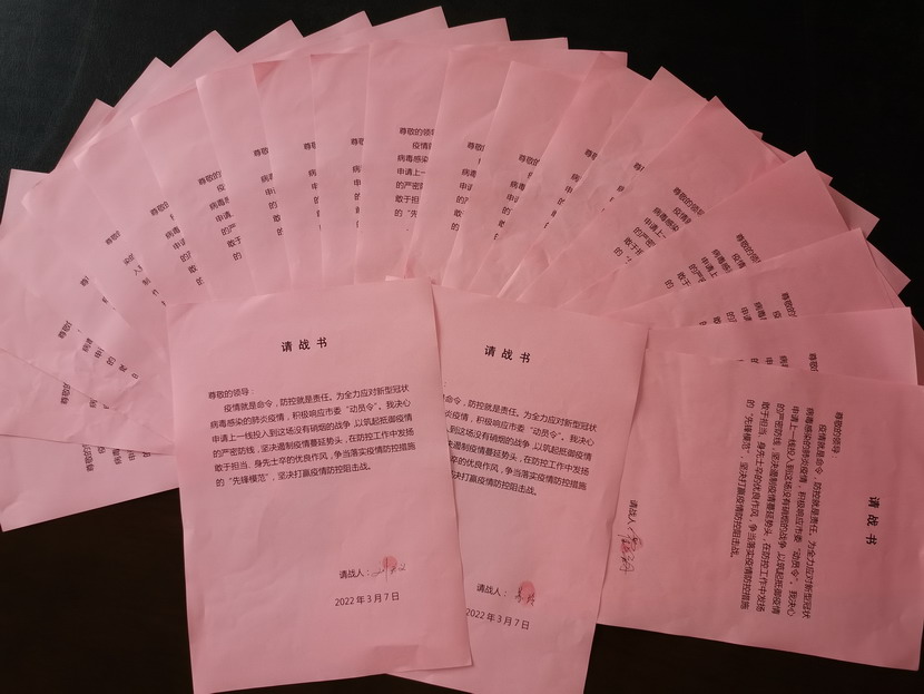 在黨員帶動下,群眾也紛紛行動起來?!斑€有我們,我們雖然不是黨員,但是我們也想為抗疫貢獻(xiàn)自己一份力量......”優(yōu)秀職工沈秀成、邱榮濱、韓永剛、占恒春如此說道。“我決心申請上一線投入到這場沒有硝煙的戰(zhàn)爭,以筑起抵御疫情的嚴(yán)密防線,聽從組織的統(tǒng)一指揮與安排,不計(jì)得失,無論生死,絕不退縮......”,42名志愿者在請戰(zhàn)書上簽上自己的名字并按下手印,紛紛表示,隨時準(zhǔn)備著黨中央的召喚,祖國的召喚,一聲令下,立即奔赴抗戰(zhàn)一線。