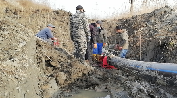 鈣液管道輸送工作因受到外部工程施工影響,時不時就會出現(xiàn)管道被施工機(jī)械損壞現(xiàn)象。對此,供鹵組管道維修人員主動出擊,加強(qiáng)管道的日常巡視和維護(hù)能力。管道維修工作沒有可定性,大家風(fēng)餐露宿、中午盒飯快餐、天黑挑燈夜戰(zhàn)、雨天打傘堅持,這樣的管道搶修工作已成為他們的日常工作常態(tài)。
