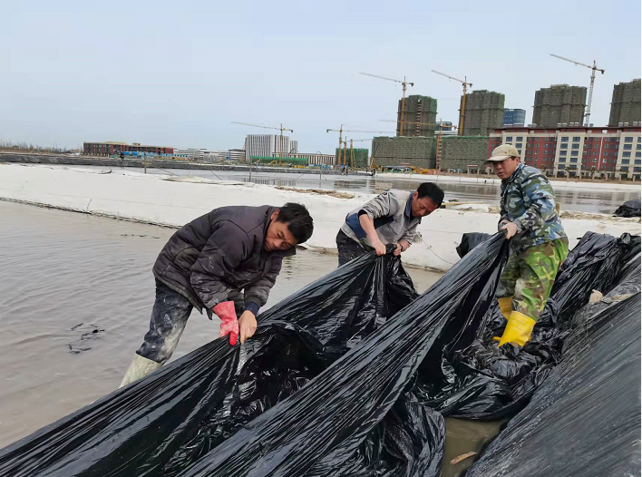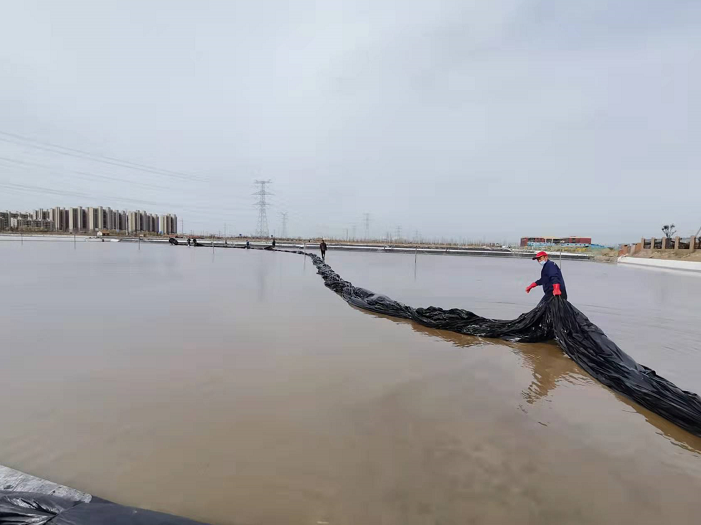 不負(fù)春光早起步,大干快上正當(dāng)時(shí)。隨著我市疫情剛一解封,海州灣公司礦鹽復(fù)產(chǎn)工程立即開啟加速“奔跑”模式,經(jīng)過前期充分的準(zhǔn)備和精心部署,在3月31日疫情解封的第一天,安排貨車將第一批塑布運(yùn)輸?shù)轿?。次日早?/span>7點(diǎn),海州灣公司和翔立分公司全體員工在先鋒班組集合,開啟第一輪塑布安裝以及鹵水灌池工作,搶抓“小滿”前后十八天的池內(nèi)長鹽黃金期。