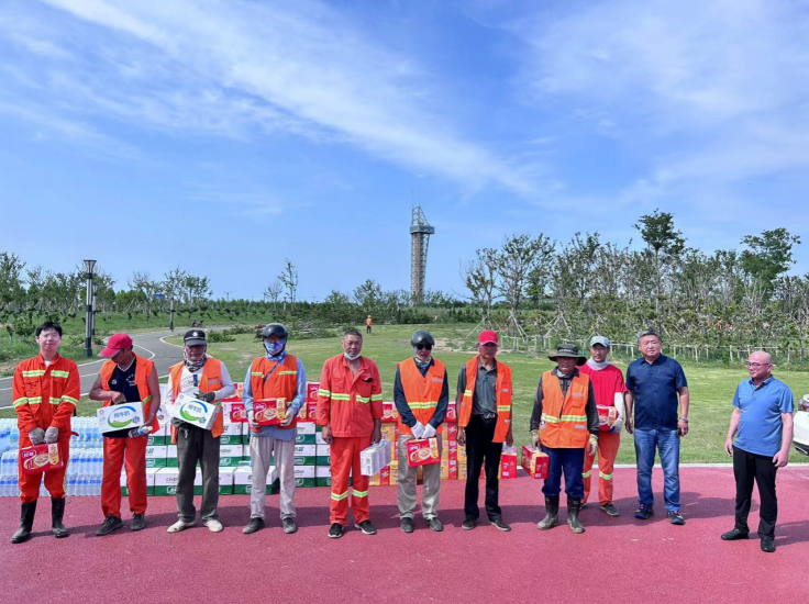 在現(xiàn)場(chǎng),為他們送去礦泉水、八寶粥、冰紅茶、牛奶等防暑降溫物品和生活用品。莊董事長(zhǎng)與員工們親切交談,關(guān)心詢問員工作和生活情況,并叮囑要合理調(diào)整工作時(shí)間,妥善做好員工高溫防暑降溫工作。接到領(lǐng)導(dǎo)遞到手上的慰問品,聽著領(lǐng)導(dǎo)的問候和囑咐,員工們心懷感激,競(jìng)相表示要克服酷暑高溫,堅(jiān)守崗位,盡職盡責(zé),以飽滿的工作熱情為企業(yè)發(fā)展貢獻(xiàn)力量。(孫祥艷)