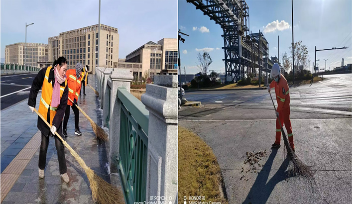 人工保潔“無所畏懼”。該分公司9個班組100多名保潔人員每天在班長的帶動下,無懼徐圩海風(fēng)吹透身體,盡管手凍僵了,仍然揮動手中掃把清掃園區(qū)輔道落葉、泥土1500多米長,清倒各種果皮箱300多個,轉(zhuǎn)運各類生活垃圾500多包,清洗站臺20多個,清除道路坑塘積水30多處,深冬時節(jié)道路人工保潔質(zhì)效再“升溫”。