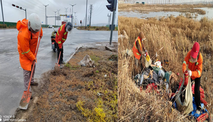 ? ? ? ?突擊處理“一馬當(dāng)先”。該分公司園區(qū)兩個(gè)班組雙休期間,及時(shí)服從徐圩城建活動(dòng)保障路線整改要求,強(qiáng)化蘇海路路面兩側(cè)施工圍檔,石化三路中風(fēng)帶護(hù)欄清洗力度。班組人員兩人一對(duì),三人一組,無懼徐圩海風(fēng)吹透身體,揮動(dòng)手中拖把清洗圍檔,護(hù)欄長(zhǎng)達(dá)1000多米長(zhǎng),清除車輛拋灑積土20余處,用辛勤勞作汗水踐行勞動(dòng)本色。