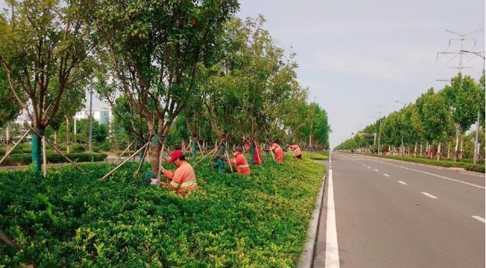 精心部署管養(yǎng)方案。召開(kāi)班子及綠化班組骨干人員會(huì)議,針對(duì)目前接手現(xiàn)狀,實(shí)事求是研究制定整改提升方案。結(jié)合秋季修剪任務(wù),力爭(zhēng)在9月底實(shí)施到位。組織黨員突擊隊(duì)對(duì)祥和路、云港路、仁和路原施工方防寒布進(jìn)行拆除,序時(shí)開(kāi)展除草專(zhuān)項(xiàng)行動(dòng),集中力量加固樹(shù)撐。截止目前共拆除法桐、白蠟、欒樹(shù)、櫸樹(shù)、女貞等3200余株防寒布;加固300余株樹(shù)木;清除雜草2萬(wàn)余平方。針對(duì)前期氣溫高、相對(duì)干旱天時(shí),加強(qiáng)綠植澆灌補(bǔ)水及病蟲(chóng)害工作。利用一個(gè)星期立足早晚?yè)屵M(jìn)度,對(duì)重點(diǎn)道路綠植澆灌補(bǔ)水。特別是后補(bǔ)植的色帶、苗木增加澆水次數(shù),確保澆透,保證苗木成活率。